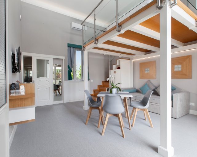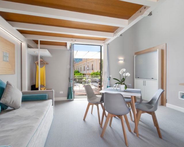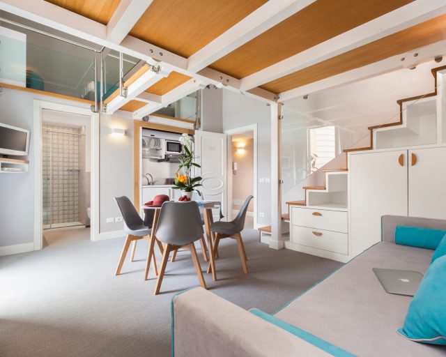 Developed on two levels, our bright Apartments all have a view of the square and a delicately colored atmosphere.